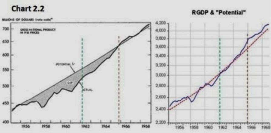 60-e godine su donijele novi impuls globalnom prosperitetu. Nakon 50-ih i poslijeratne obnove gospodarstvo je na stabilnoj stazi rasta. Novi ekonomski konsenzus je išao u smjeru intervencionizma s naglaskom na fiskalnoj politici. Cilj ekonomske politike je ostvarenje potencijalnog rasta i pune zaposlenosti. Presjednikovi savjetnici su konstantno precjenivali kolika bi bila prirodna stopa nezaposlenosti. Sredinom 60ih nominalni output je počeo rasti i preko potencijalnog što je počelo stvarati inflacijske pritiske.